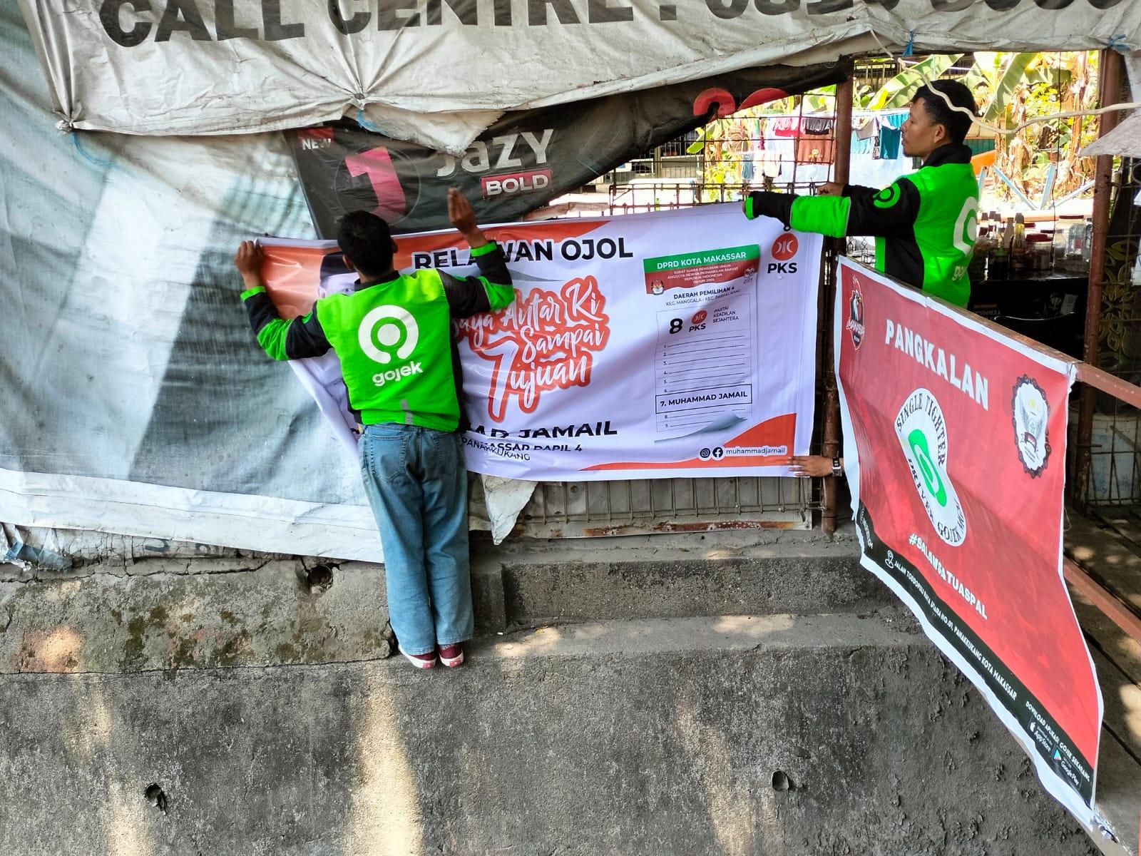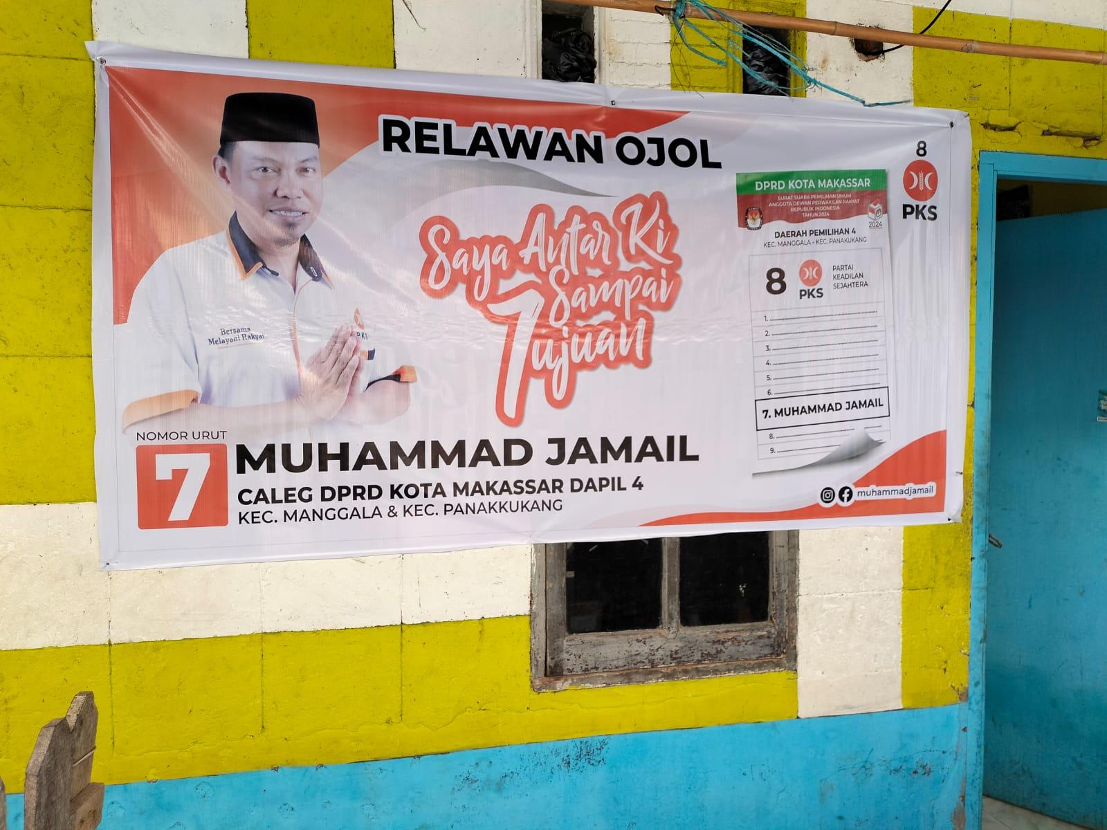 Muhammad Jamail selaku perwakilan ojol yang maju di pemilihan legislatif 2024 melalui partai keadilan sejahtera di dapil 4 kec.Manggala-Panakkukang dengan nomor urut 7, Sangat terharu dan merasa bangga terhadap inisiatif teman-teman ojol yang membantu saya sosialisasi kepada keluarga mereka dan membuat spanduk,stiker secara swadaya,