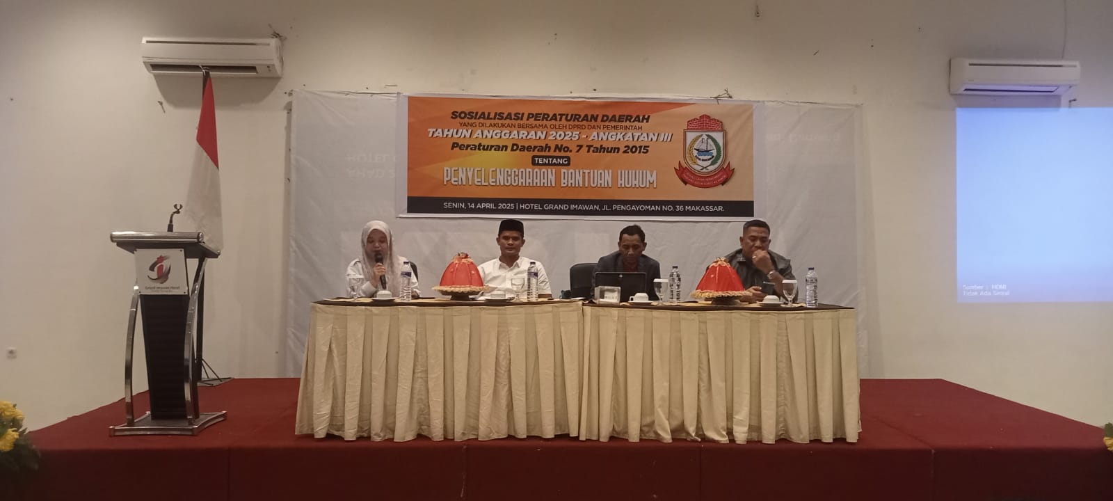 “Kami berharap dengan sosialisasi Perda Penyelenggaraan Bantuan Hukum masyarakat khususnya di Kecamatan Mamajang, Mariso dan Tamalate (Mamarita) lebih bisa mengetahui peraturan dan wadah, dimana mereka bisa mendapatkan bantuan saat mereka berada dalam sengketa perkara,” jelasnya.